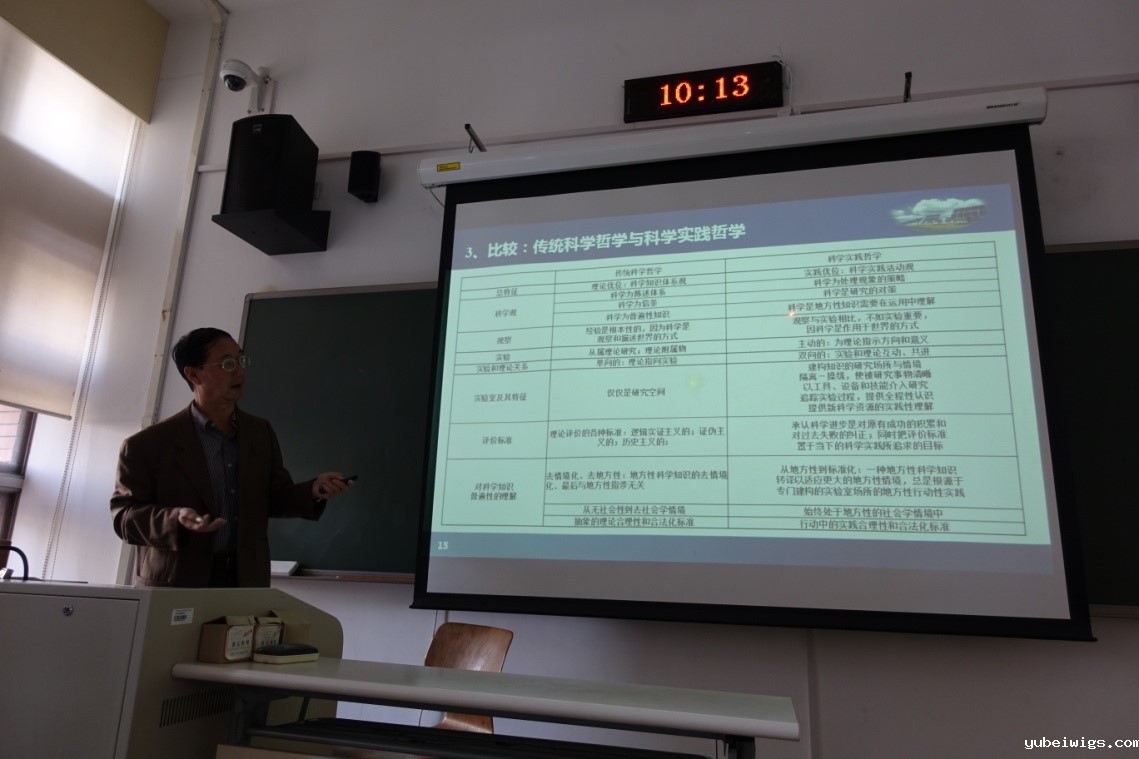 2016年4月22日上午,伟德app官网下载安卓手机“科学与人文讲座”第3期在伟德客户端官网下载安装最新版本中关村校区N110教室成功举行。清华大学科学技术与社会研究中心吴彤教授应邀为伟德客户端官网下载安装最新版本师生做了题为“科学实践哲学述评”的讲座。讲座由伟德客户端官网下载安装最新版本yubeiwigs袁江洋教授主持。不仅整个教室座无虚席,且部分同学全程站立于教室门外听讲。