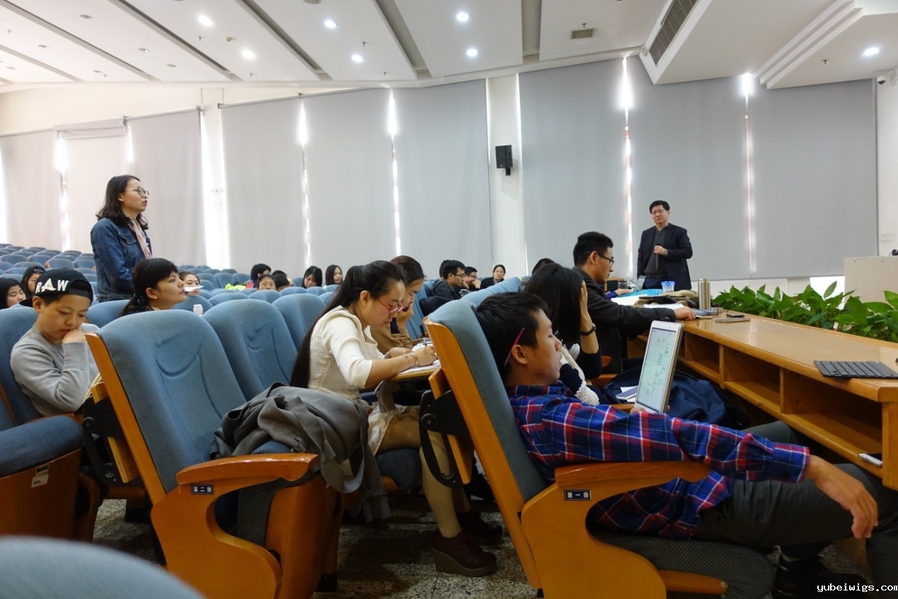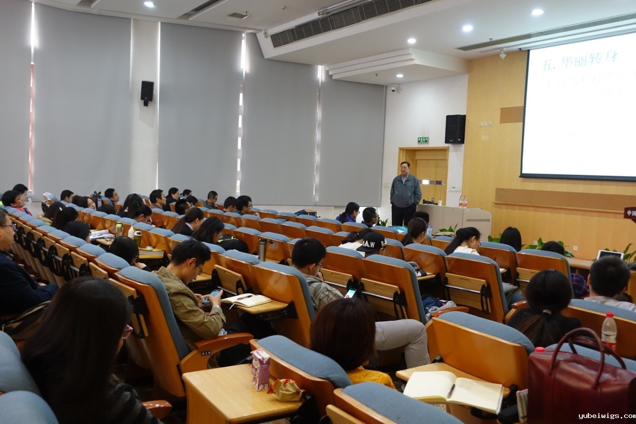 首先,王教授和听众讨论了不同的人生观,他认为树立积极的人生观是学术研究的第一步。王教授指出在做学问的过程中牢记王国维的教诲:“昨夜秋风凋碧树,独上高楼,望尽天涯路;衣带渐宽终不悔,为伊消人憔悴;众里寻她千百度,蓦然回首,那人却在灯火阑珊处。”