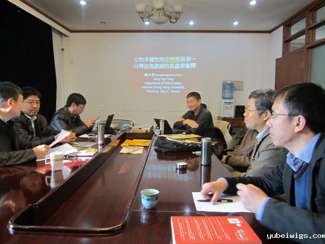 11月8日上午9:30在人文楼二楼会议室,台湾国立中兴大学昆虫学系教授杨正泽举行了题为“生物多样性的非物质启发——台湾俗俚谚语的昆虫学阐释”的学术报告。杨教授的研究方向为昆虫分类学、昆虫声学、生物多样性保育、民俗生物学,对蟋蟀的生物系统分类成果发表于国内外期刊论文50篇以上。担任台湾“行政院”特有生物保育研究中心“蟋蟀文化与生物多样性特展”顾问,台湾国立自然科学博物馆与兴大合办“鸣虫展”策展人。其主要研究以声音行为特征为基础的蟋蟀生物系统分类,被2008年国家地理频道拍成影片在166国播出。