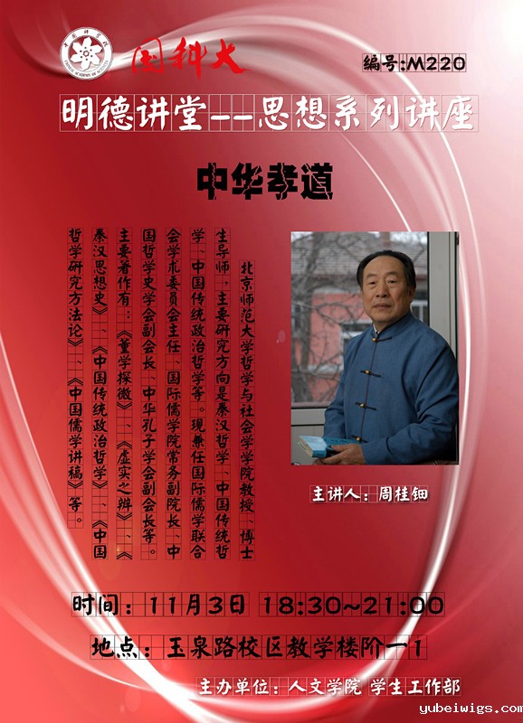 【明德讲堂预告】玉泉路11月3日:中华孝道